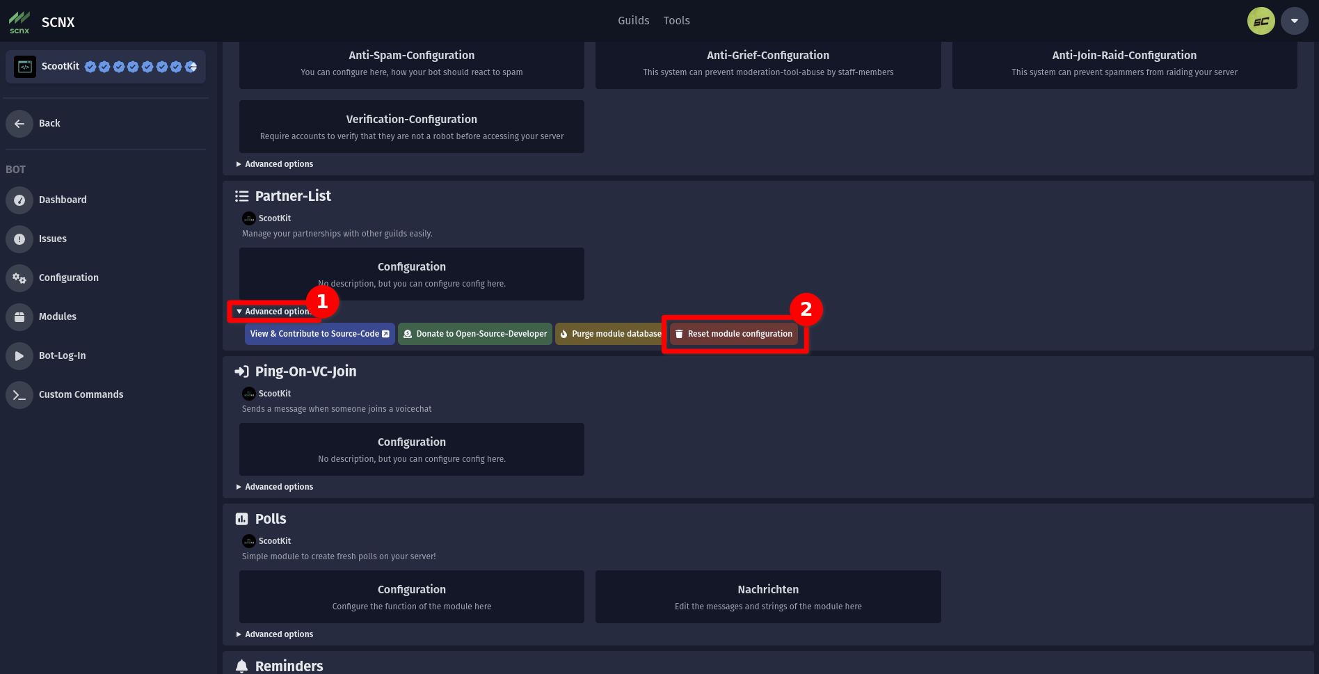 Resetting the configuration of a module to its default values, will permanently delete all customizations and changes you made to the module configuration.